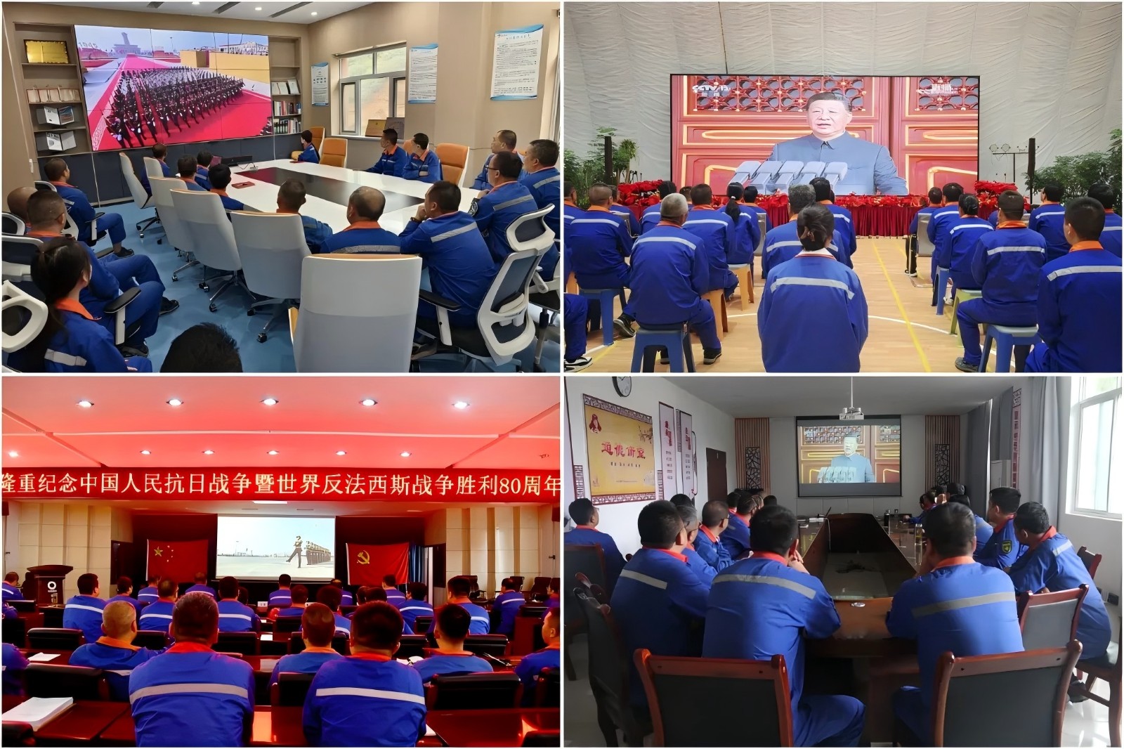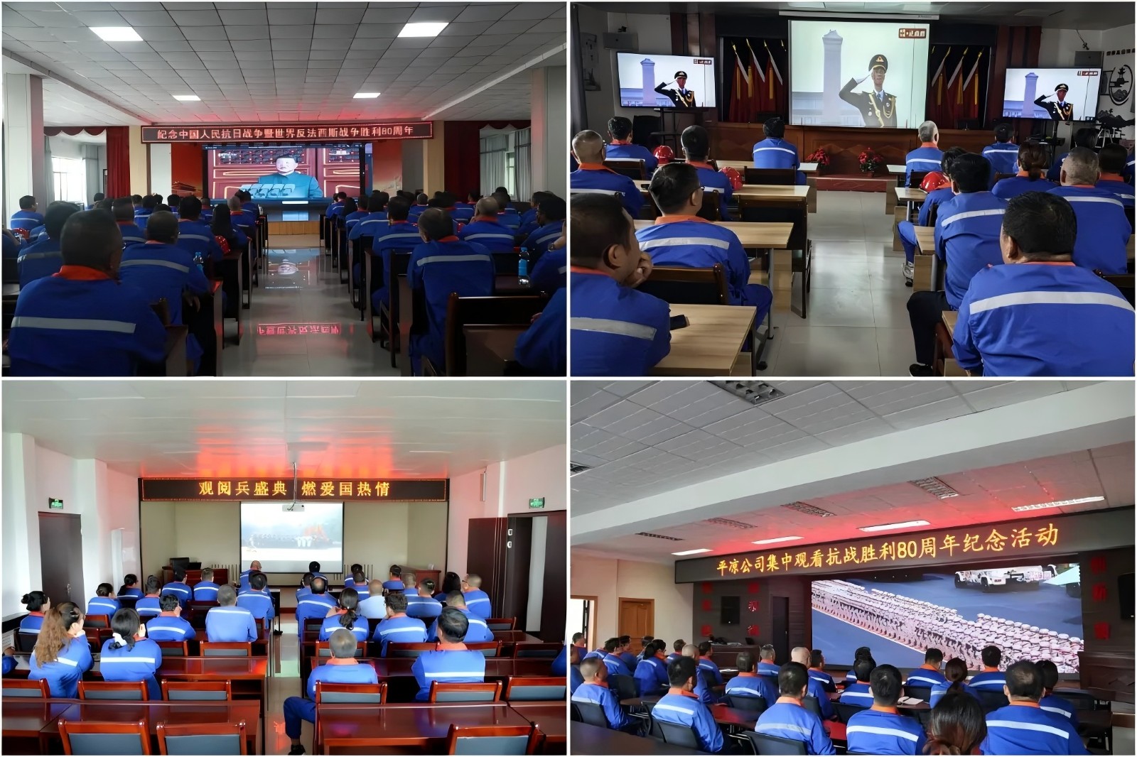 祁连山水泥组织观看纪念中国人民抗日战争暨世界反法西斯战争胜利80周年大会直播