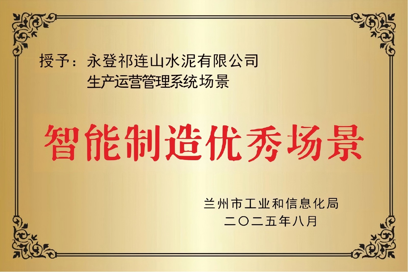 永登公司通过国家两化融合管理体系AAA级认证,获得甘肃省“数字化车间”、水泥行业“十四五”智能制造领航企业称号,取得8项软件著作权,2项实用新型专利。